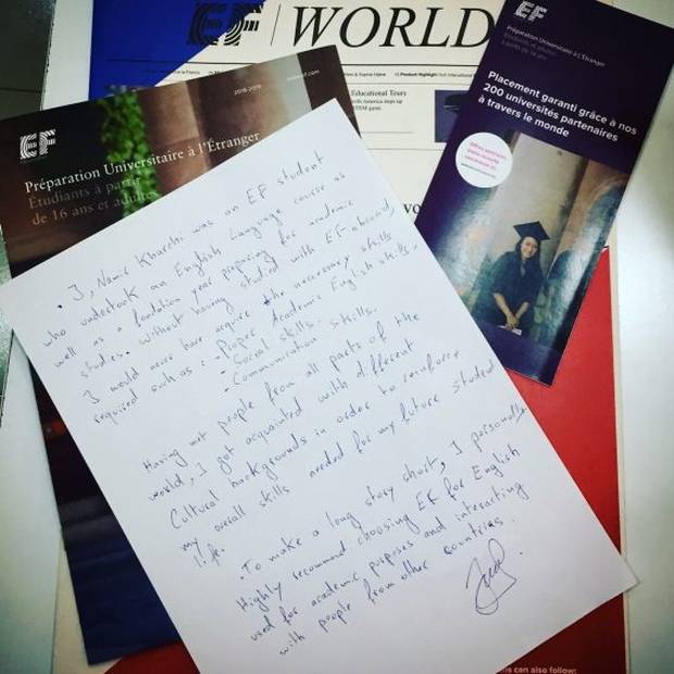 Je suis Namir un ancien étudiant EF, qui a suivi un cours d’anglais ainsi qu’une année de Préparation universitaire. Si je n’avais pas étudié avec EF à l’étranger, je n’aurais jamais acquis les compétences nécessaires telles que des compétences en anglais académique, sociales et en communication.